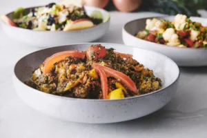 Frokosten fra RizRaz er både fleksibel og alsidig, så den nemt kan tilpasses virksomhedens behov – uanset om man foretrækker grønne, vegetariske retter eller en menu med kød og fisk.